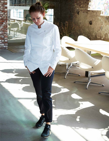ЖЕНСКИЙ КИТЕЛЬ ПОВАРСКОЙ С ВОРОТНИКОМ РУБАШКИ, V-ВЫРЕЗОМ, ПРИТАЛЕННЫЙ СИЛУЭТ (КРОЙ), SLIM FIT, ST5406, GREIFF