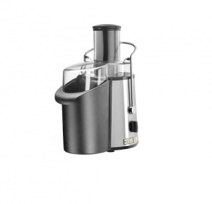 Соковыжималка центрифужного типа, для обработки твердых овощей и фруктов. Предохранительный микровыключатель: есть. Материал фильтра и диска: нержавеющая сталь.Материал корпуса: нержавеющая сталь + пищевой пластик.Автоматическое выталкивание жома: есть. Диаметр отверстия: 7 см. Скорость: 2800 об/мин